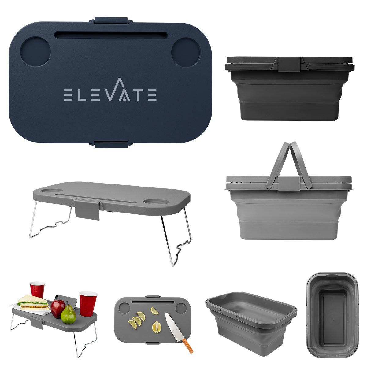 Made Of Combo: Polypropylene, Chrome Plated Iron And TPE | 16L Capacity | Collapsible/Expandable Bucket | Features Foldable Handles | Durable Lid With Clips For A Tight Seal | Lid Can Be Used As A Cutting Board | Brackets On Underside Of Lid Can Be Folded Out To Create A Small Table | 2 Locking Clips | 2 Placements For Cups | Mobile Slot In Lid Holds A Variety Of Phone Or Tablet Sizes For Easy Viewing | Silicone Bottom Can Pop Out And Be Used For Ice And Drinks | Collapsible For Easy Storage | Spot Clean/Air Dry